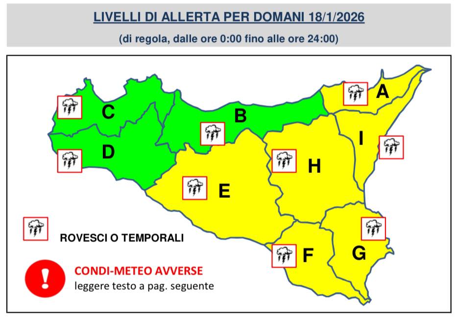 ll Sindaco di Agrigento avvisa la cittadinanza che il dipartimento regionale della Protezione Civile ha diramato l’avviso di allerta gialla del 17/01/2026 con validità dalle ore 00:00 fino alle ore 24:00 del 18/01/2026.