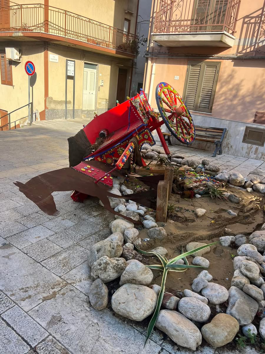 Vandali in azione nella piazza di San Biagio Platani. Distrutta una delle opere raffiguranti un carretto Siciliano. A darne nota è il sindaco Salvatore Di Bennardo che dichiara: “è stato individuato il responsabile dell’incidente che ha provocato la caduta del nostro carretto siciliano.Ho personalmente visionato le immagini delle telecamere di sorveglianza insieme alla Polizia Locale, e posso confermare che l’autore è stato identificato. I nostri vigili sono già al lavoro per completare tutti gli adempimenti necessari, nel pieno rispetto delle procedure di legge. Il carretto siciliano è un simbolo della nostra tradizione e della nostra comunità, e ci impegneremo affinché venga presto ripristinato nel suo splendore originario. Vi terrò aggiornati sugli sviluppi”, ha concluso il primo cittadino.